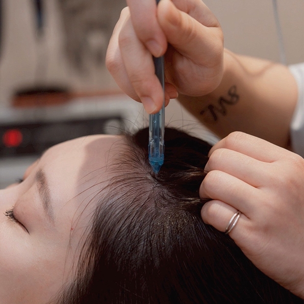 |絲若雲建髮技術| 純碳棒紅光照射,增強毛囊活性,改善毛髮生長環境。 高壓氣流與水霧微粒混合,溫和去除油脂與角質。 運用磁力,將落入毛孔,會加速毛囊休眠的金屬粉塵微粒吸附。 用微電波將營養成分送達毛囊深層,提升吸收效率。 透過微電波促進頭皮與淋巴循環,舒緩緊張、提升代謝,並加強營養吸收。 針對頭部的毛髮穴位加強按摩,刺激血液循環,放鬆頭皮提升整體健康。