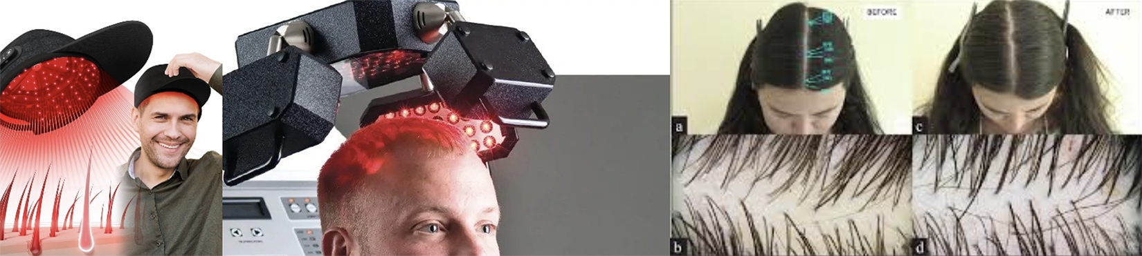 雷射生髮帽的原理主要是藉由低能量的雷射光,刺激毛囊細胞的粒線體產生能量,進而活化休眠毛囊,讓毛囊重回生長期,進而改善頭皮局部血液循環,達到強健髮根作用。